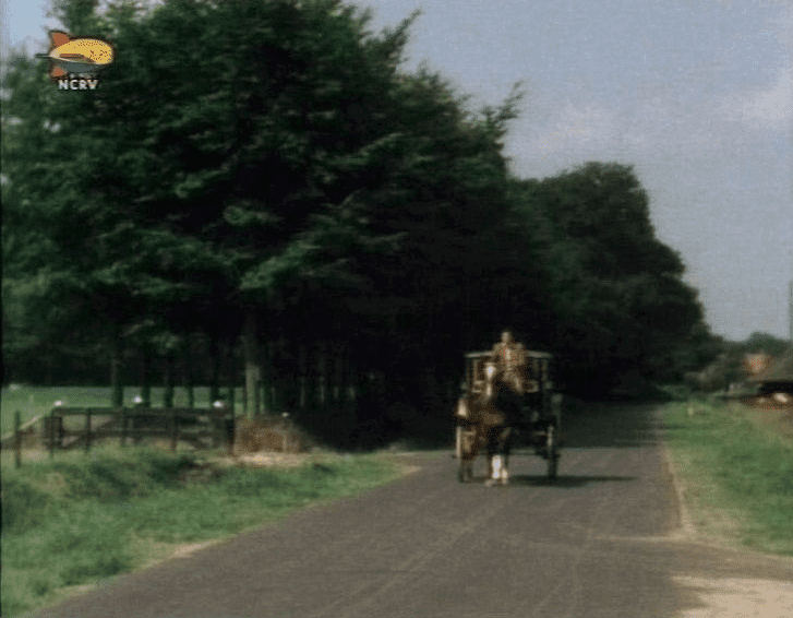Als de kinderen op weg zijn naar het Trappenhuis, lopen ze langs een boerderij en komen ze de koets tegen met Jan