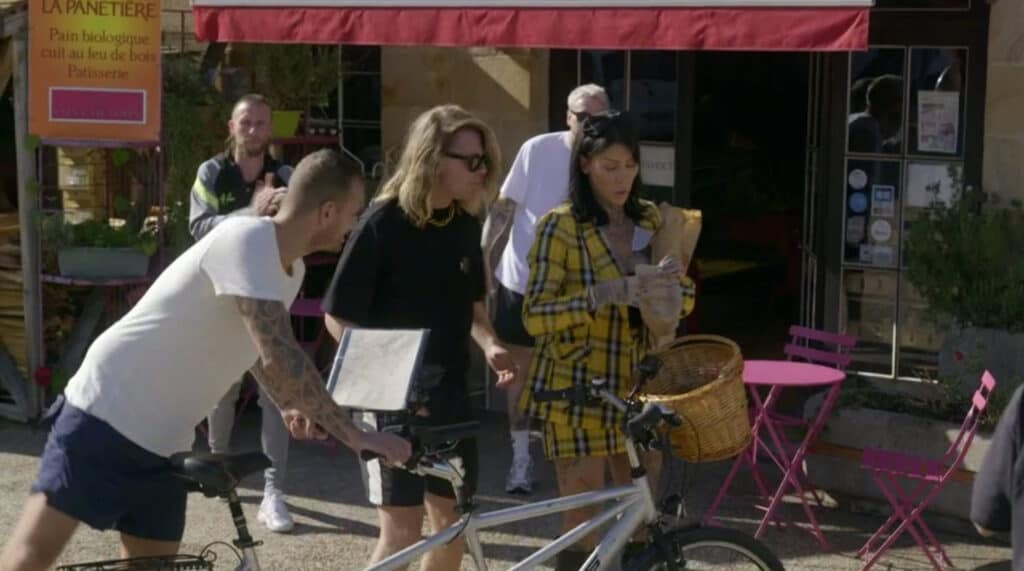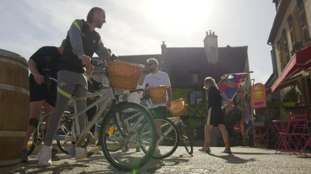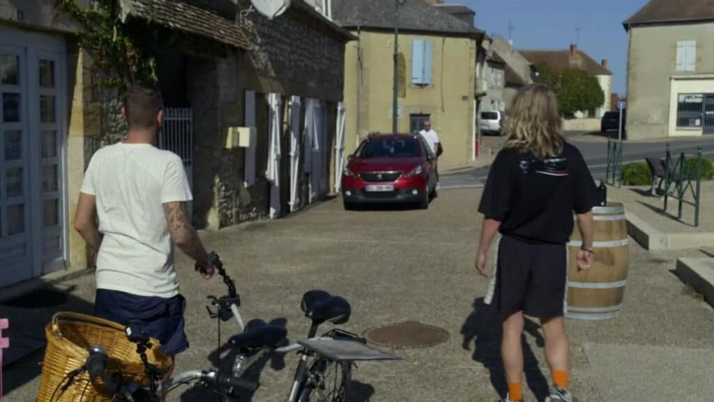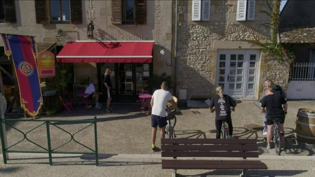 Vandaag bezorgen de getrouwen en de verraders o.a. stokbrood, croissants en chocolade broodjes in tweetallen per fiets in de plaats Saint Menoux.