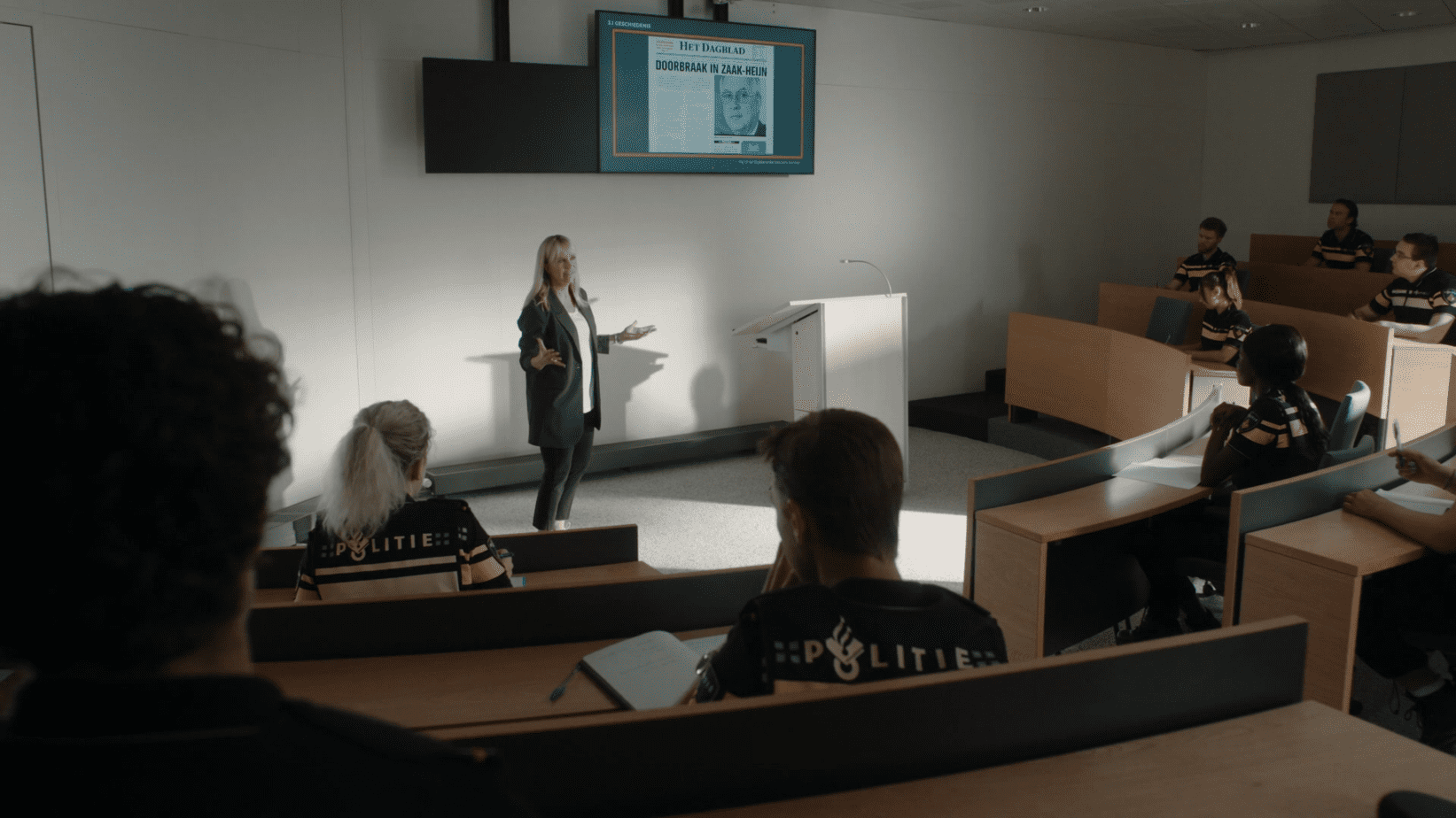 Gedragsdeskundige Anna van Kessel geeft collega aan jong politie agenten in opleiding.