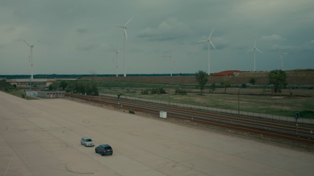 Ferry en John ontmoeten de Politie Mol, Walter op een verlaten parkeerterrein.