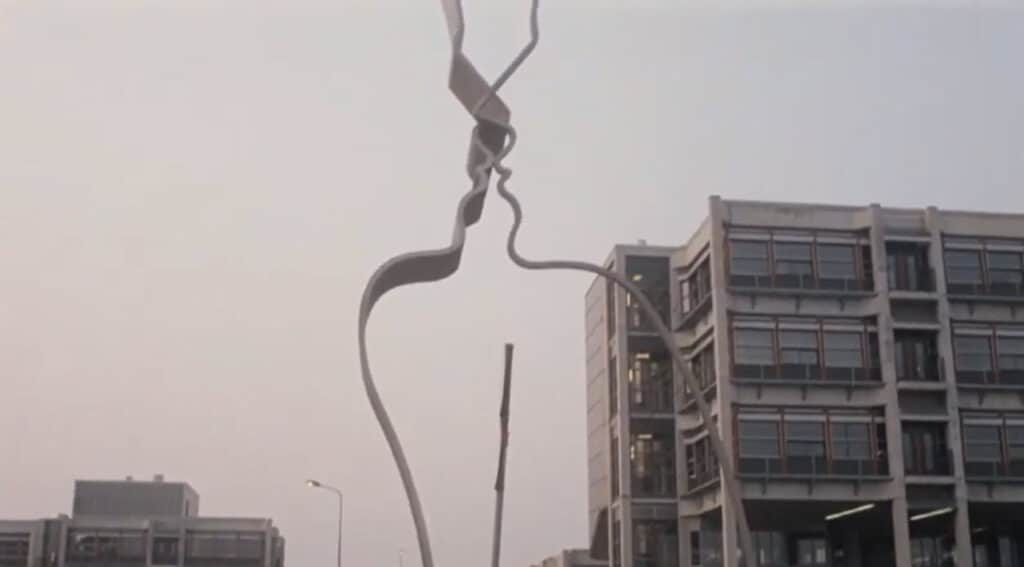Journaliste Mieke De Beer wordt door Felix Adelaar afgezet bij de redactie. Het gebouw is inmiddels gesloopt en er is nieuwbouw gepleegd. Het kunstwerk “De kus” is op een andere plaats in Amsterdam geplaatst.