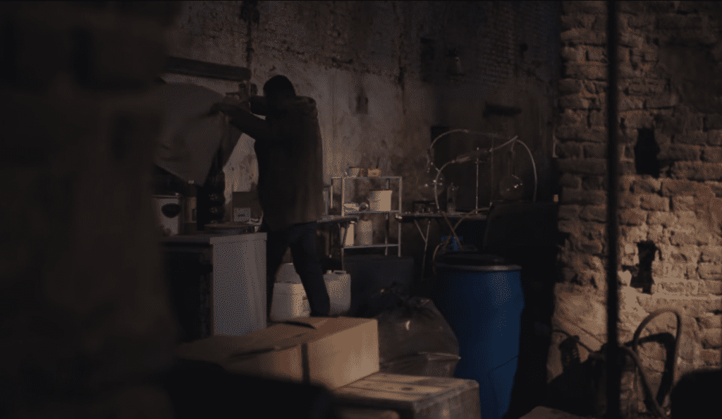 Drugs laboratorium waar Lars voor Ferry aan het koken is.
