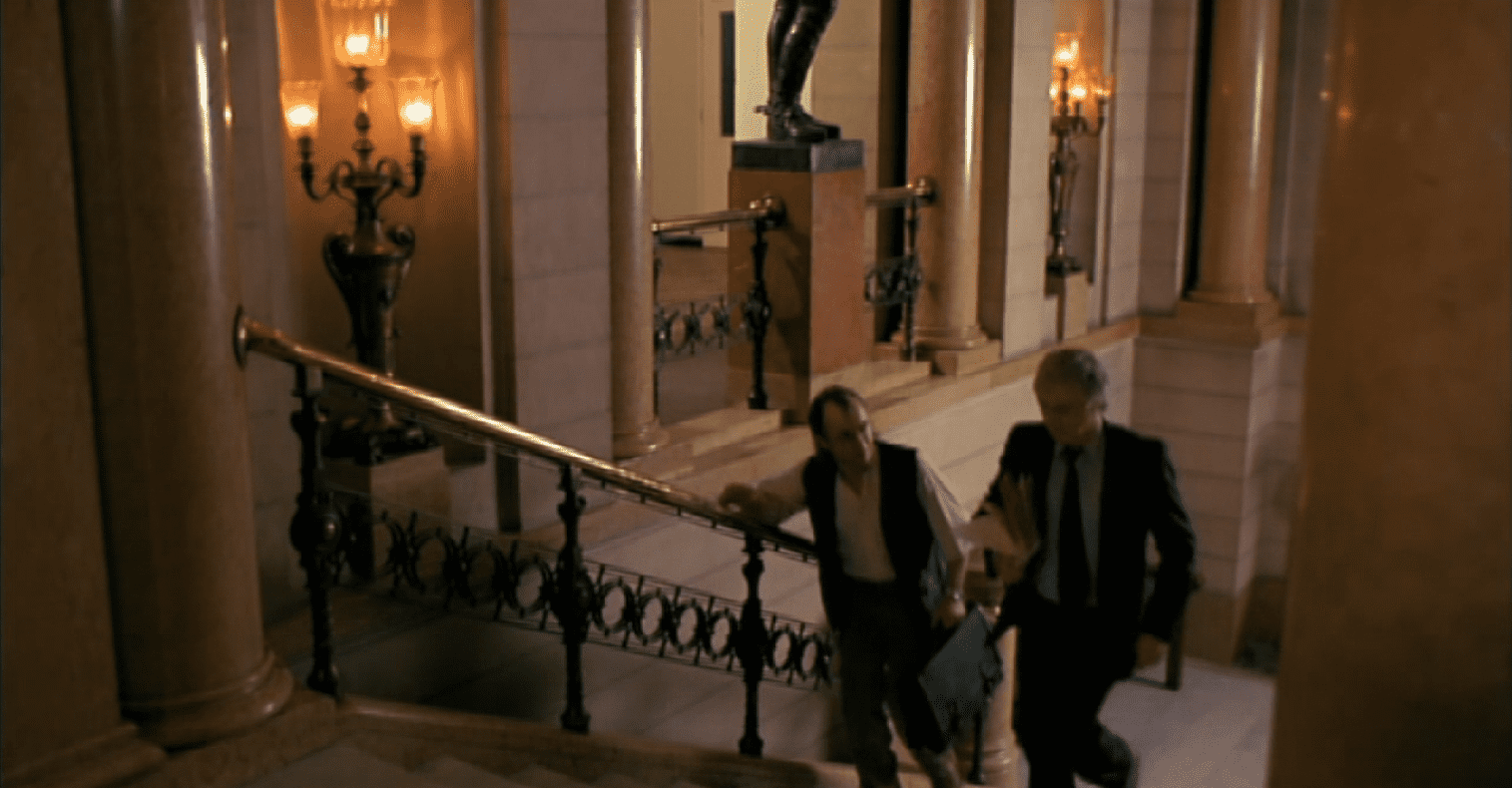 Het gemeentehuis (binnen opname) waar Sjakie werkzaam is.