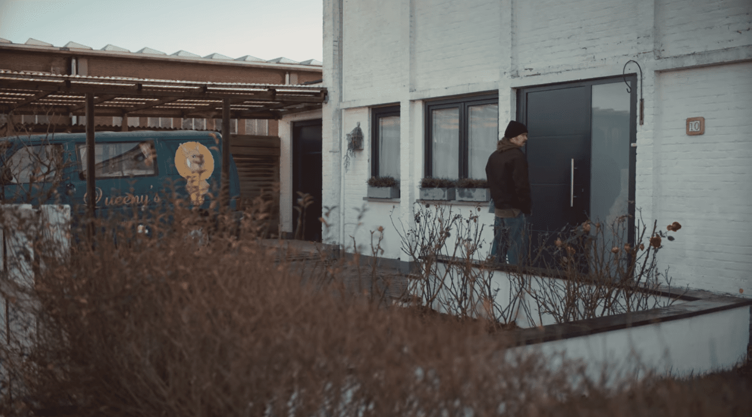 Woning van Danielle van Marken en Ingrid Braafheid met de mobiele trimsalon van Danielle voor de deur geparkeerd.