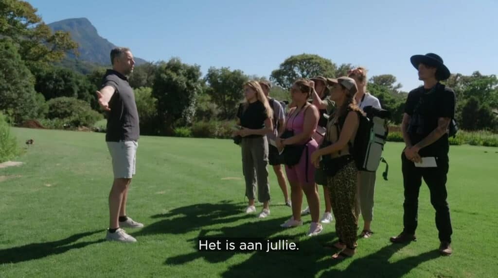 De deelnemers gaan vogels spotten in het nationale botanische park “Kirstenbosch”