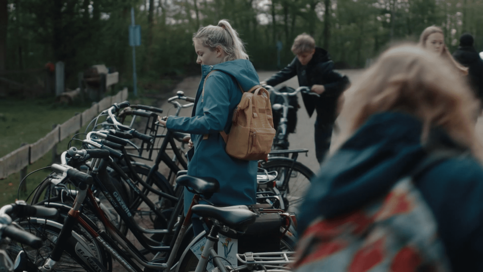 Daphne Oosthoek gaat samen met haar klasgenoten naar huis op de fiets.