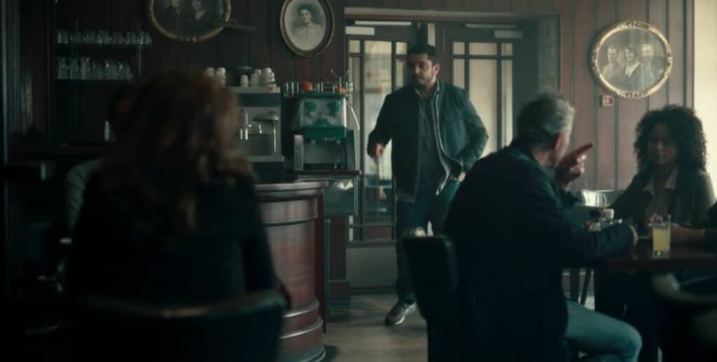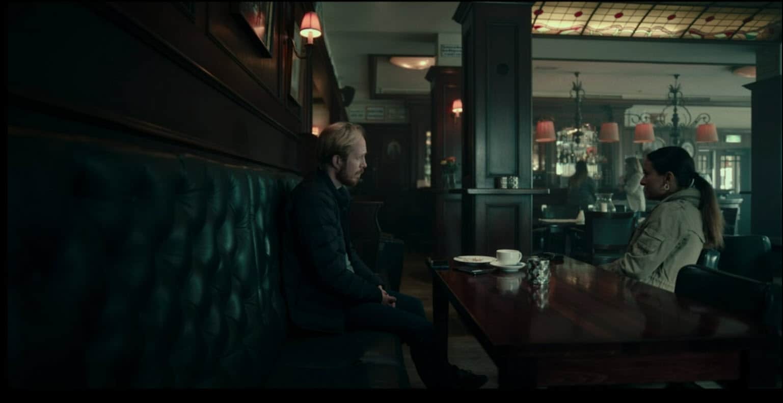 Diana van Lier ondervraagt Martin tijdens het drinken van een kopje koffie.