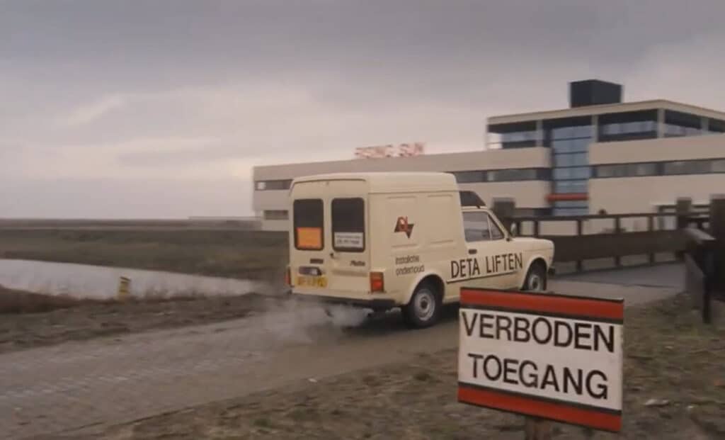 Het hoofdkantoor van Rising Sun, de firma die de microprocessor van de lift heeft geleverd. Tijdens de opnames was dit nog een gebied in ontwikkeling.