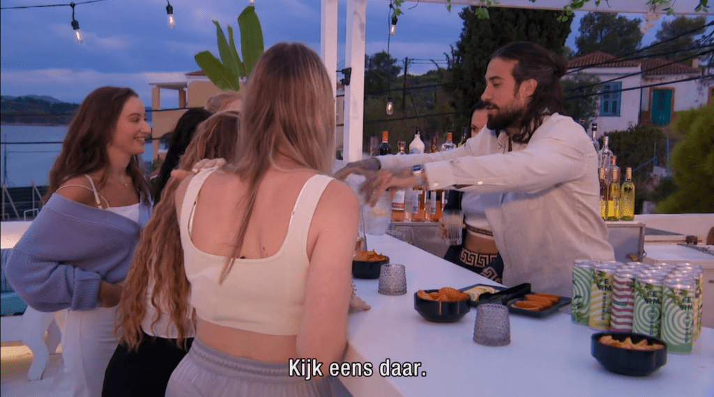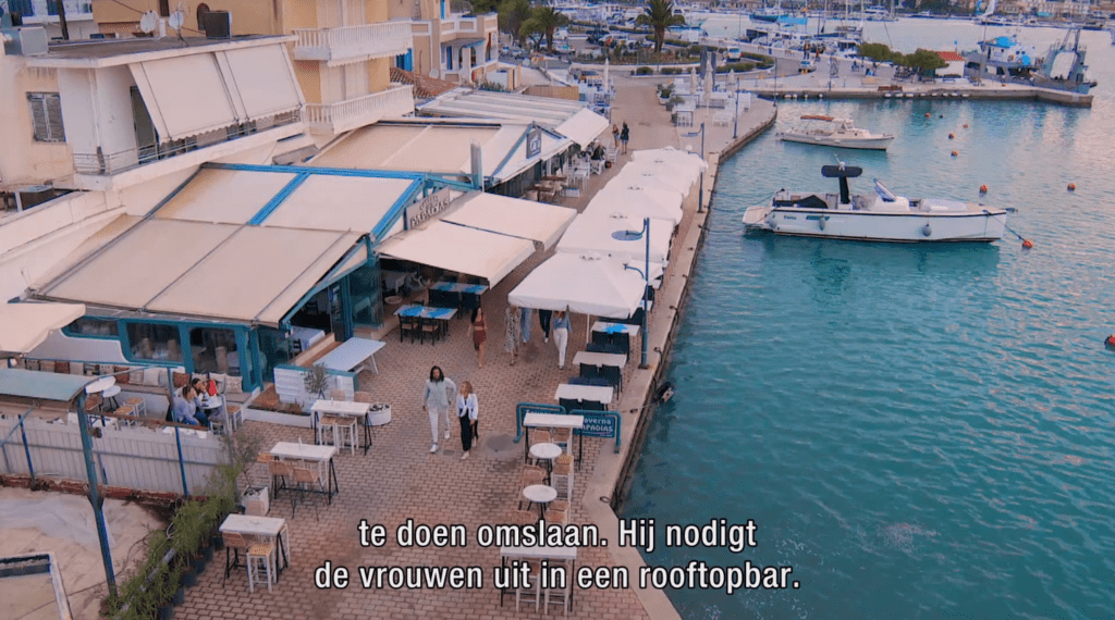 Fabrizio gaat met de vrijgezellen dames een drankje doen op Rooftopbar in Porto Heli waar de sfeer om te snijden is.