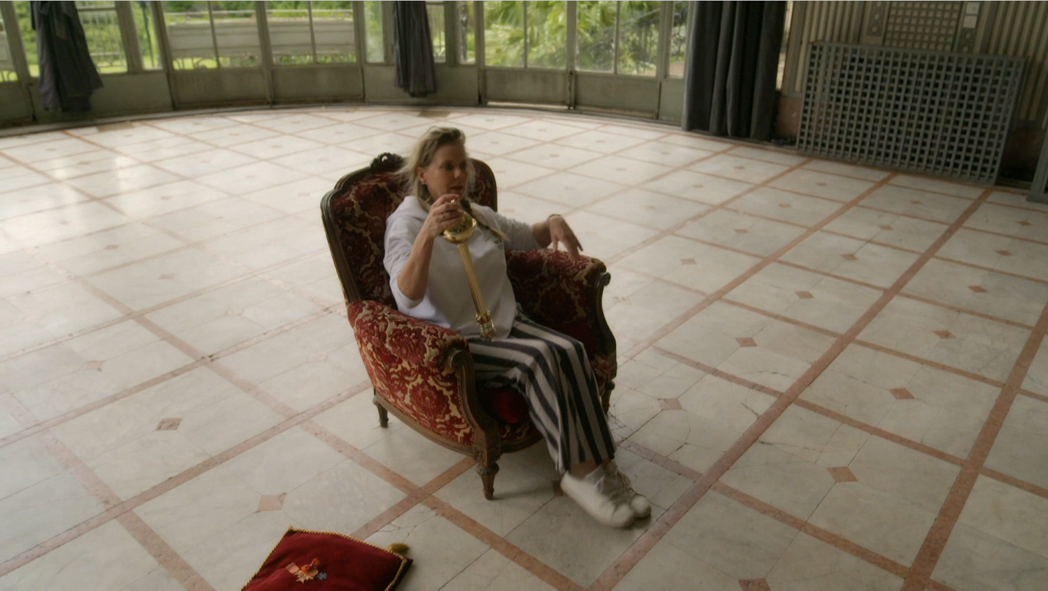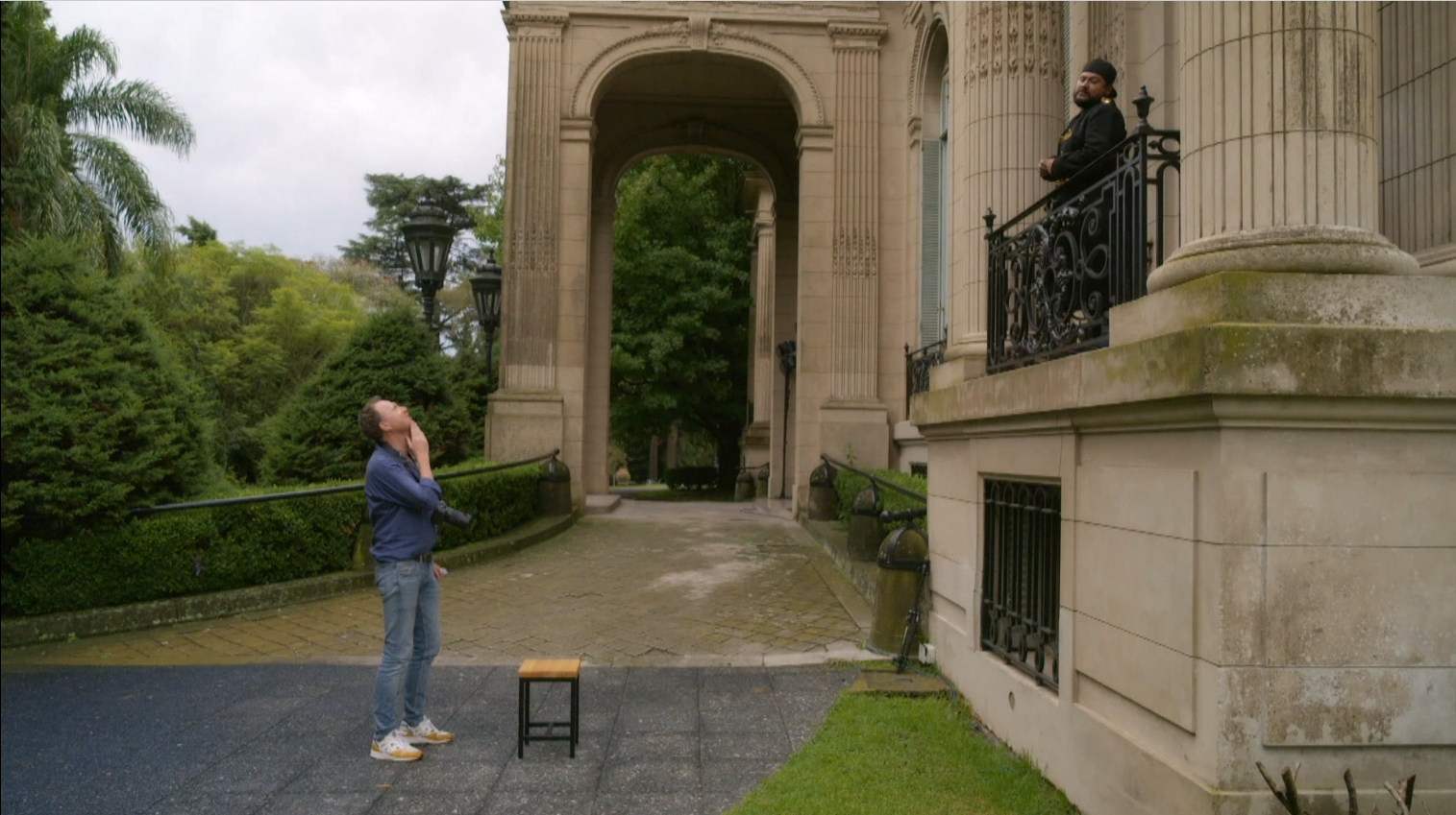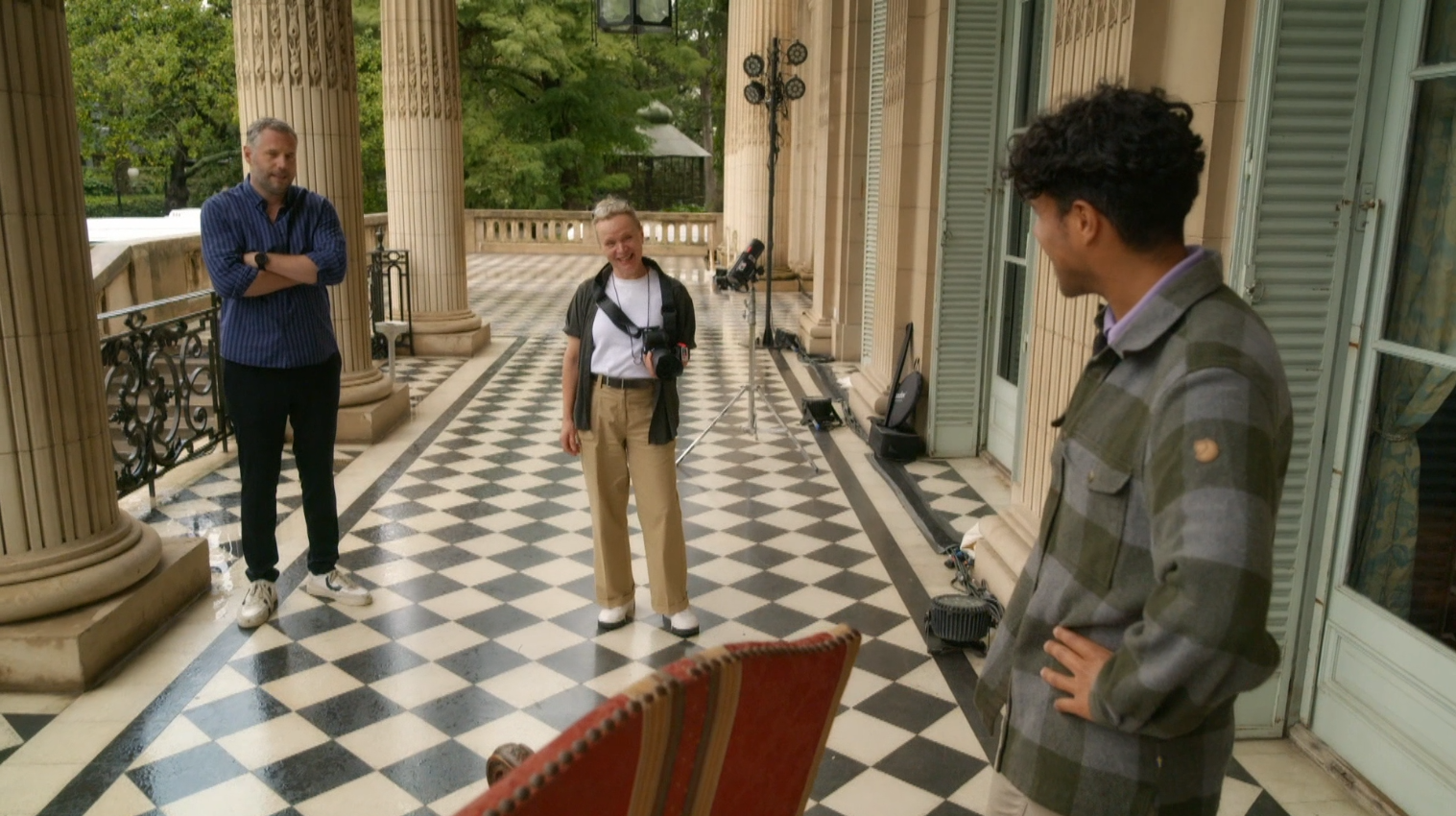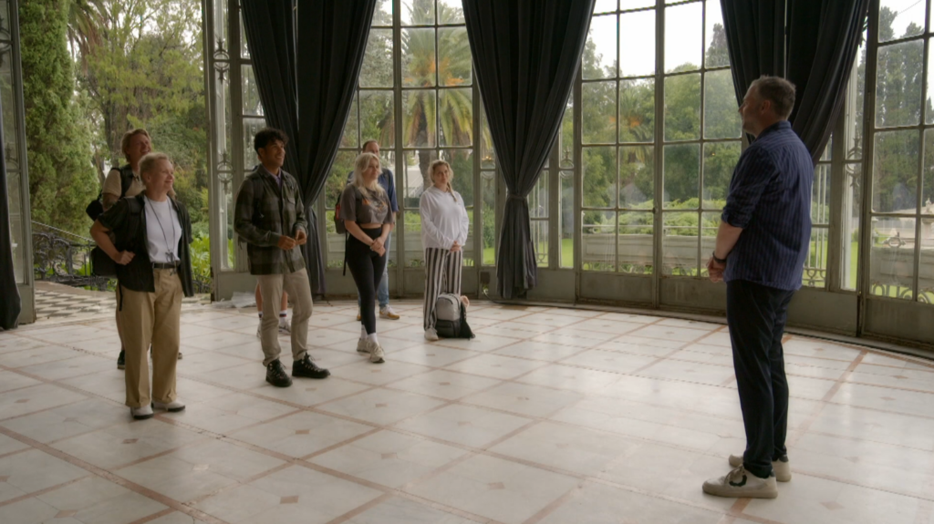 In paleis San Souci moeten de deelnemers de Cartoneros op een statie portret vastleggen.