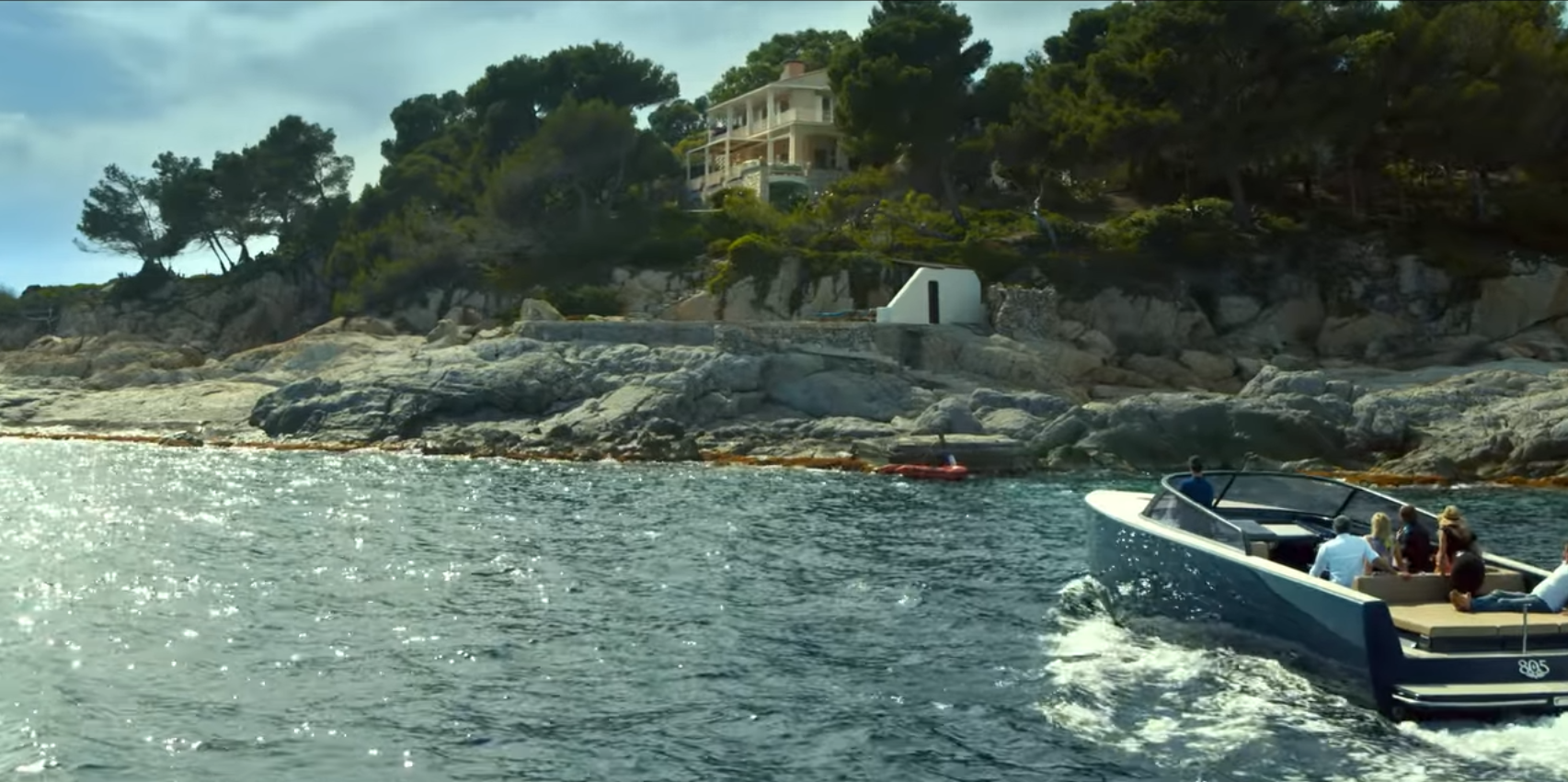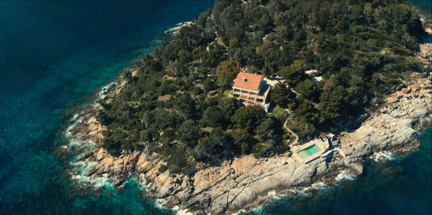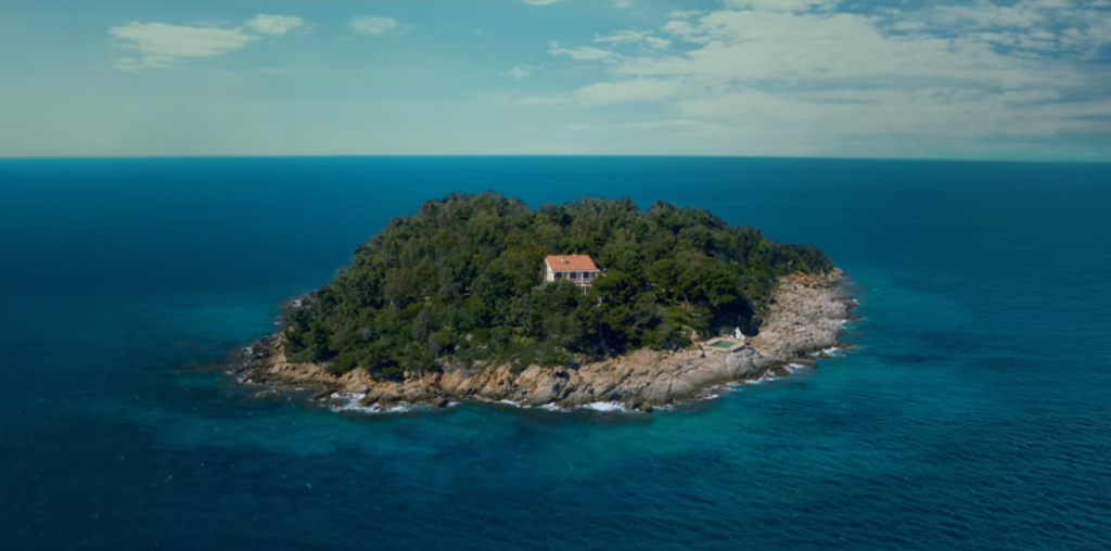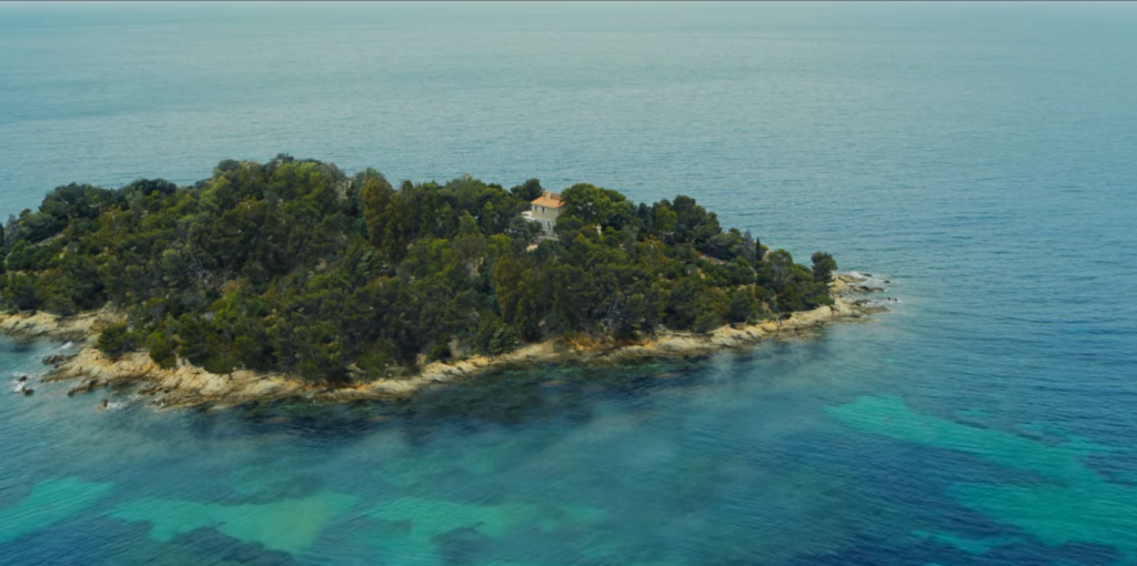 Het privé eiland waar de vriendengroep naar toe gaat blijkt in werkelijkheid helemaal geen eiland te zijn. De Villa “Pointe de la Fossette” staat op een kleine landtong in het zuiden van Frankrijk. Zie ook de laatste foto in deze reeks.