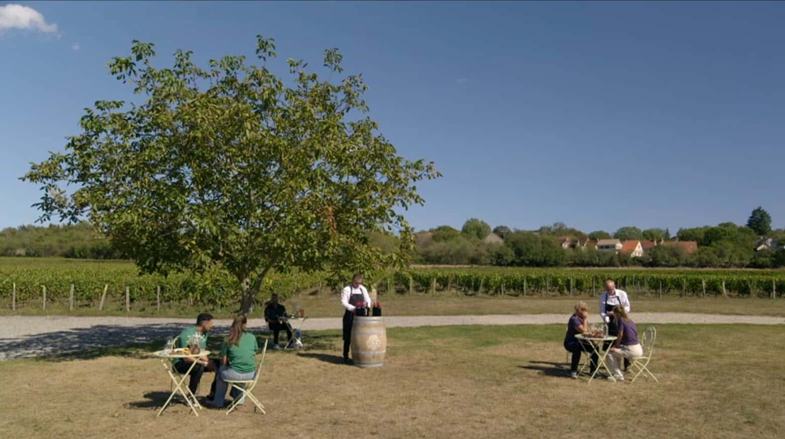 Op de wijngaard Domaine Bois Bourbon moeten de deelnemers van de Verraders 2024, etiketten van flessen wijn beschrijven, deze doorgeven via een portofoon aan het team in de wijnkleder, welke deze vervolgens weer moeten beschrijven via een portofoon aan een team welke midden in de wijnvelden staat om deze etiketten na te tekenen.