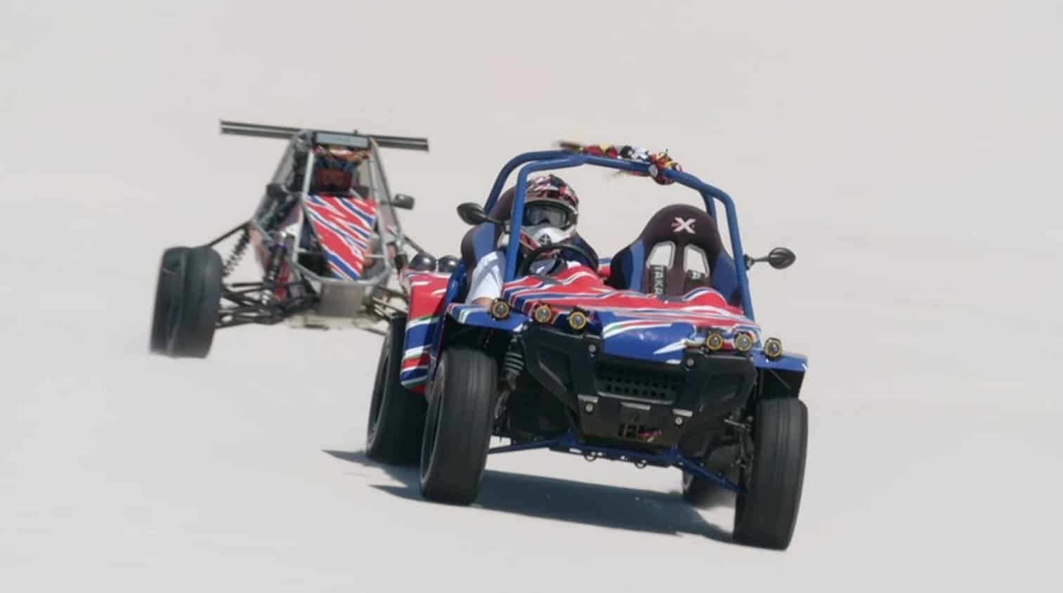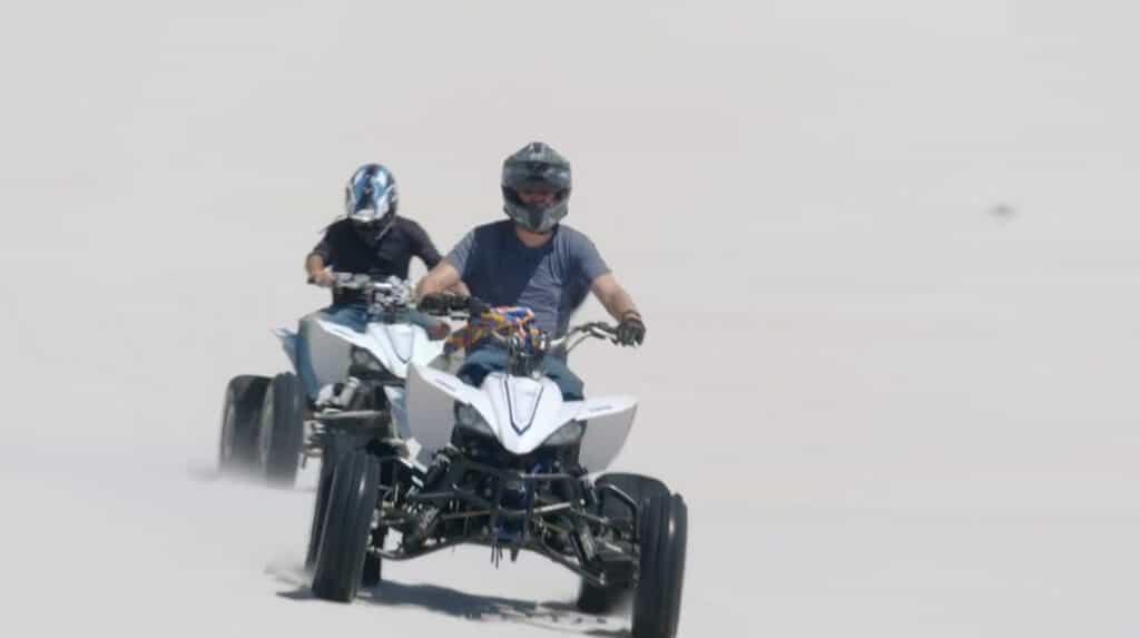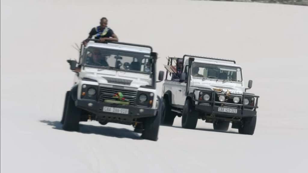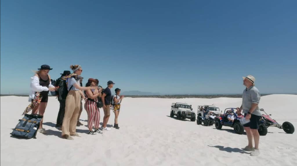 De fotografen gaan actiefoto’s maken in de Atlantis Dunes.
